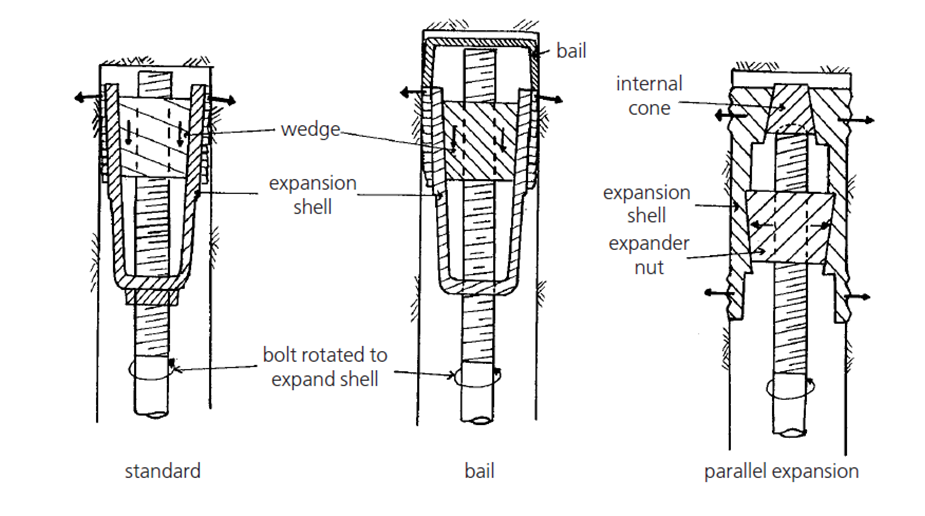 They rely on mechanical expansion to generate friction and clamping force between the bolt and the rock borehole. The key component is the expansion shell (a split, wedge-shaped sleeve) installed at the end of the bolt. When the bolt is tightened (usually with a nut on the exposed end), the expansion shell is compressed by a wedge, causing it to expand outward and press tightly against the inner wall of the borehole. This creates strong radial friction, anchoring the bolt firmly in the rock, and then the bolt can bear tensile loads to prevent rock collapse or displacement.